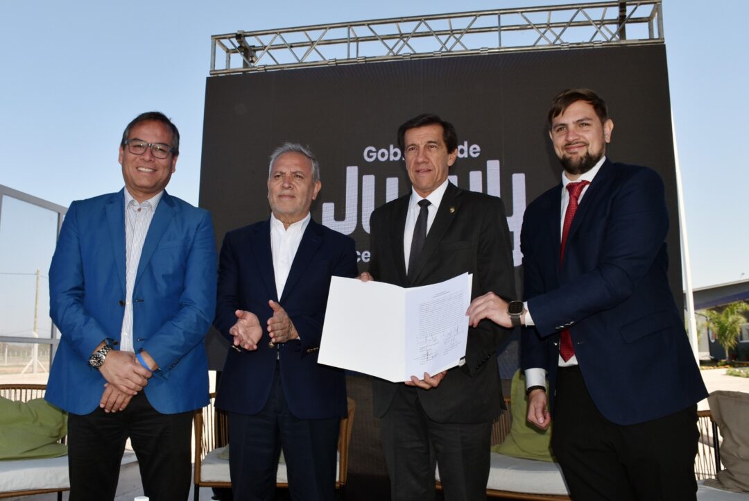 El Gobernador de la Provincia de Jujuy, Carlos Alberto Sadir, el Ministro de Desarrollo Económico y Producción, Juan Carlos Abud, el Presidente de la Zona Franca Perico, Exequiel Lello Ivacevich y el Presidente del Directorio de ZOFRI S.A, Iván Berríos Camilo, formalizaron la firma de un convenio de colaboración que busca potenciar el desarrollo de ambos territorios.