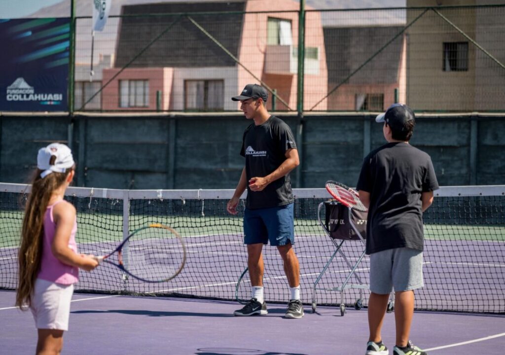 Con la participación de más de 80 niños y niñas, el Club de Tenis Chile fue escenario de una entretenida clínica deportiva, liderada por el destacado tenista iquiqueño Hanamichi Carvajal. El deportista es una joven promesa nacional, que actualmente combina el alto rendimiento en el deporte con su formación académica en Estados Unidos, gracias a una beca otorgada por Fundación Collahuasi desde 2022.