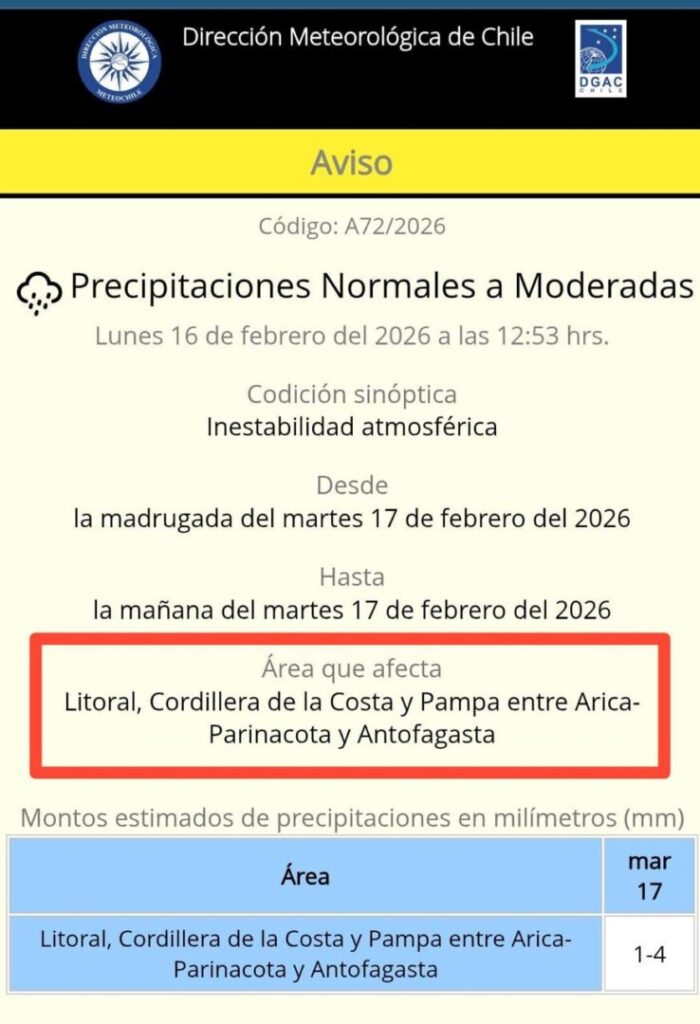 Inicio Noticias Anuncios ANUNCIO DE PRECIPITACIONES PARA LA REGIÓN NoticiasAnuncios ANUNCIO DE PRECIPITACIONES PARA LA REGIÓN 16 febrero, 2026 139 FacebookTwitterPinterestWhatsAppImpresiónCopy URL Artículos relacionadosMás del autor Anuncios INVITAN A EVENTO MUSICAL EN SOLIDARIDAD CON EL PUEBLO CUBANO Anuncios 20 de noviembre: Feria laboral con más de 150 vacantes llega a Pozo Almonte Anuncios Servel enviará mensajes de textos a 24 millones de teléfonos celulares